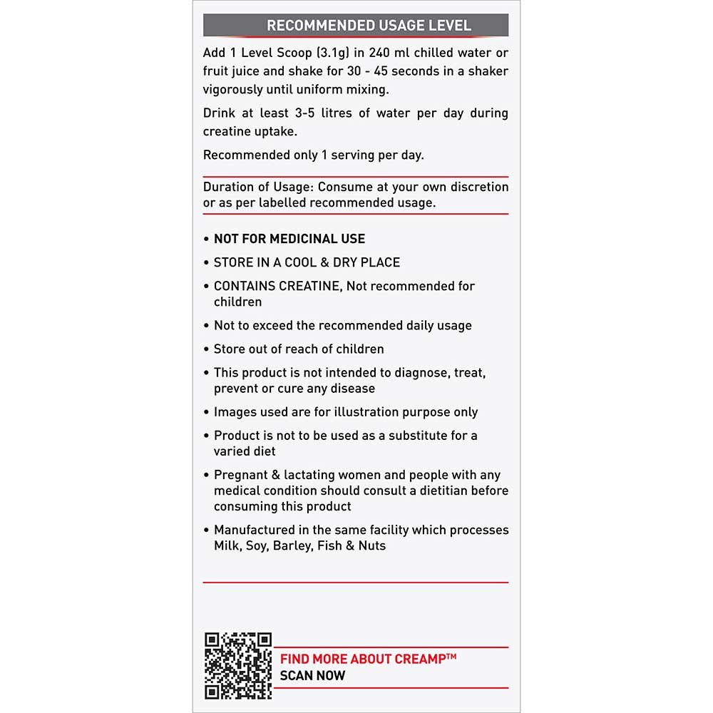 • Each serving of MuscleBlaze CreAMP Creatine Monohydrate serves 3g of fast-absorbing and highly bioavailable creatine for building strength and endurance
