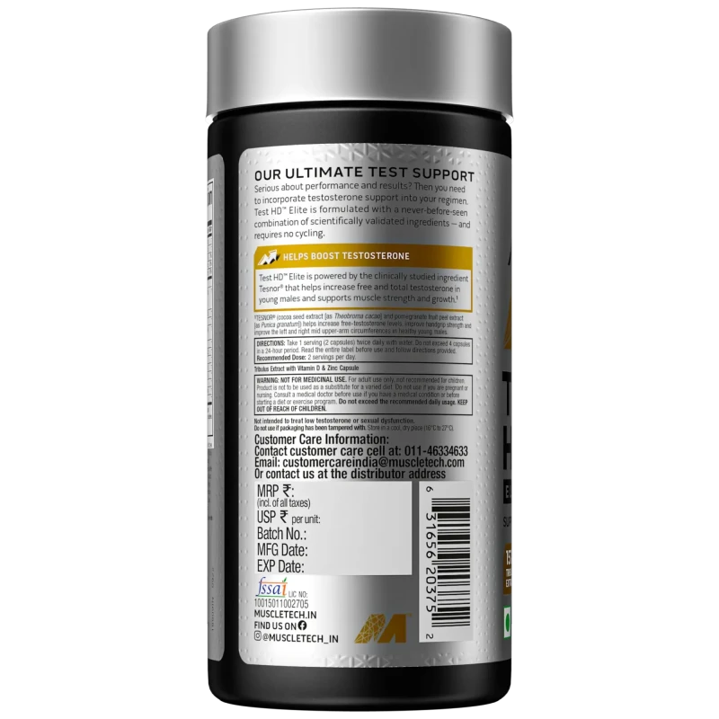 Test HDTM Elite is powered by the clinically studied ingredient Tesnor® that helps increase free and total testosterone in young males, and supports muscle strength and growth.