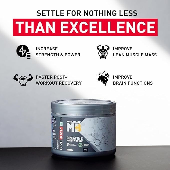 • We at MuscleBlaze made our #1 Creatine Monohydrate even better! Introducing MuscleBlaze CreAMP Creatine Monohydrate which contains 100% pure creatine monohydrate along with MB CreAbsorb to ensure creatine stability in the body.