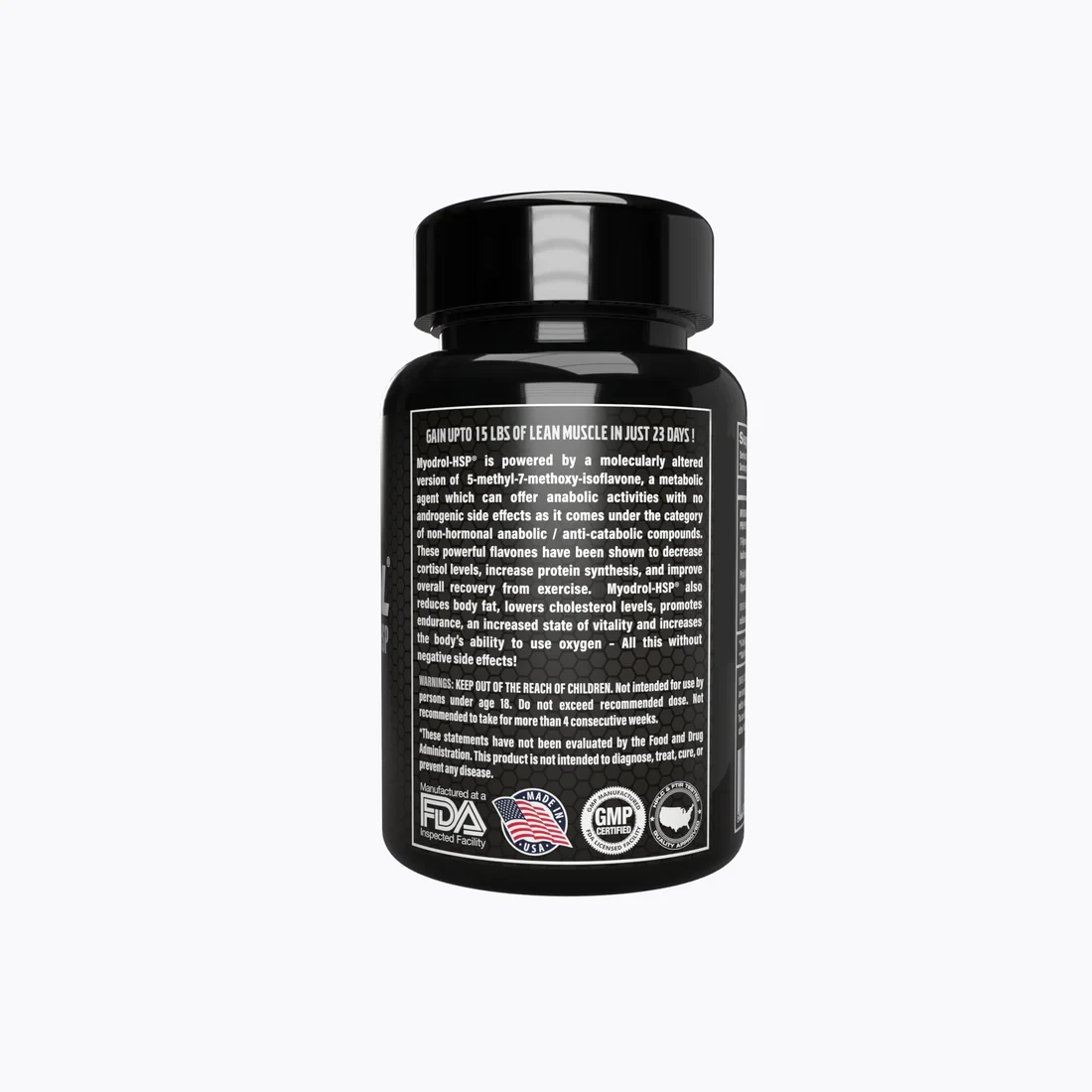Myodrol-HSP takes is foundations from Hungarian discovery of 5-methyl-7-methoxy-isoflavone, a metabolic agent which can offer anabolic activities with no androgenic side effects as it comes under the category of non-hormonal anabolic / anti-catabolic compounds. These powerful flavones have been shown to decrease cortisol levels, increase protein synthesis, and improve overall recovery from exercise.